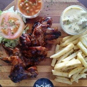 customizable 5x full succulent wings served with chips.