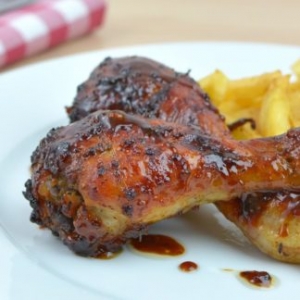 2x succulent grilled chicken drumsticks served with chips