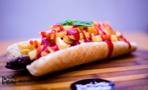 customizable Extra long boerewors roll served with caramelized onions & chips.
