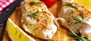 customizable 2x succulent grilled chicken breasts served with chips & salad.